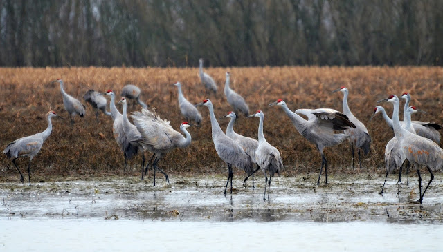 Some of the some thirty thousand Sandhill Cranes observed from the warmth of my car for over an hour Saturday and then this grand finale happened. I was an audience of one the entire time and I was in awe. This was when the birds gave me their grand finale. Yes...I wept tears of joy, God had truly blessed me. Be sure to turn up your volume~